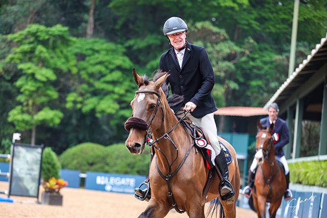 Trinta e seis conjuntos largaram na categoria e quatro chegaram ao final das três provas sem penalidades, habilitando-se ao desempate ao cronômetro pelo título paulista. Representando a Hípica Manège Alphaville, Juliana Baccelli e Kaulin das Umburanas foram os mais rápidos marcando 34s88, pista limpa, e levando a taça para casa.