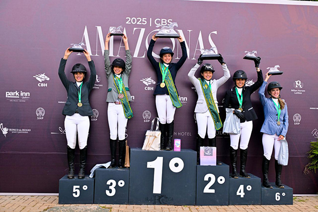 As amazonas paulistas brilharam conquistando no total nove medalhas de ouros, quatro de prata e seis de bronze, tendo perdido apenas dois títulos individuais. Parabéns para as campeãs brasileiras Jordana Laffranchi e Cartano C JMen (1,45m), Anna Paula Nerung de Noronha e Jatobá LMZ (1,35m), Olivia Pastore Vilela com Charmeur C JMen (1,25m), Sofia Negrão Moreira com Zahara das Cataratas (1,15m), Beatriz Granero montando Contara JMen (1,05m) e demais classificadas.