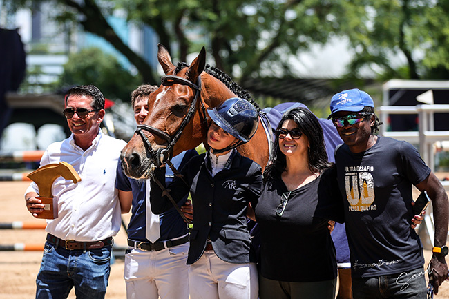 A amazona paulista Anna Katharina Laureano Brukhnova, com seu Senna KM, sagrou-se campeã da etapa brasileira do FEI World Jumping Challenge, neste sábado, 6/12, na Sociedade Hípica Paulista. A dupla, atual campeã Sul-Americana Pré-Júnior, completou os quatro percursos sem penalidades, somando 102s41 nos dois segundos percursos de cada dia.