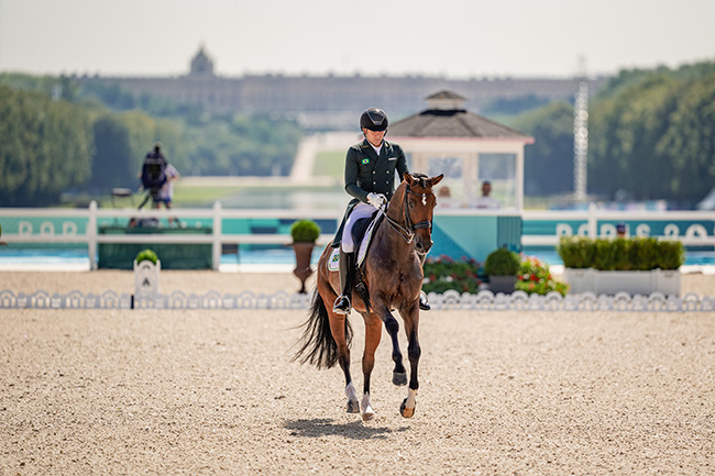 Nessa terça-feira, 30/7, o cavaleiro olímpico e medalhista pan-americano João Victor Marcari Oliva e seu Feel Good VO representaram o Brasil na primeira disputa do Adestramento, na arena montada nos jardins do Castelo de Versailles, sede do hipismo em Paris 2024, sob forte calor de cerca de 35 graus. A dupla fechou com 70.093% de aproveitamento.